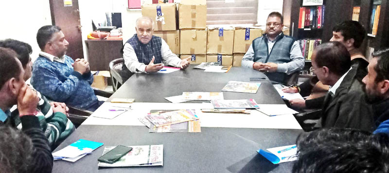JAMMU, Nov 30: BJP Library & Documentation Department led by its State Incharge Kulbhushan Mohtra in the presence of BJP State general secretary (Org.), Ashok Koul held a meeting of its State team and district Incharges at Nana Ji Deshmukh Library, BJP Headquarter, Trikuta Nagar, here, today.