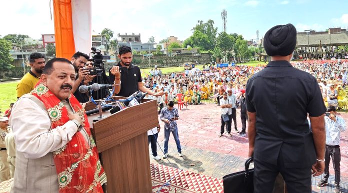 UDHAMPUR, Sept 7 : Union Minister of State (Independent Charge) for Science and Technology, Minister of State (Independent Charge) for Earth Sciences, MoS PMO, Department of Atomic Energy, Department of Space, Personnel, Public Grievances and Pensions, Dr. Jitendra Singh said here today that BJP will firmly safeguard Syama Prasad Mookerjee’s legacy of J&K’s total integration and will not allow anybody to reverse the abrogation of Article 370 done by Prime Minister Narendra Modi for which we had to wait for more than six decades.