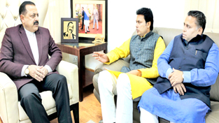 BJP Tripura State President Biplab Kumar Deb, along with BJP Tripura State “Prabhari” Sunil Deodhar, calling on Union Minister Dr Jitendra Singh, at New Delhi on Tuesday.
