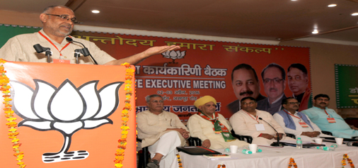 BJP, vice president Avinash Rai Khanna addressing the concluding session of working committee meeting on Sunday. -Excelsior/Rakesh