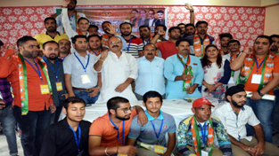 BJP Vice President Yudhvir Sethi and others during District Executive Committee meet at Udhampur on Monday.