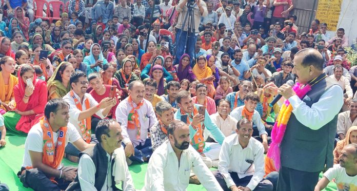 Dr Jitendra Singh cautioned the people that during this election time, there are some parties and candidates trying to provoke communal sentiments to gather votes. He asked them in an emotional tone, whether they would allow such sinful design to succeed which has the potential to ruin the mindset and upbringing of our children. On this, everybody raised their hands and said, “No”.