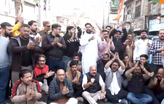 JAMMU, Feb 21: The BJP Yuva Morcha members on Saturday held a demonstration in Jammu to counter the “shirtless protest” by Congress’ youth wing workers at the AI Impact Summit in New Delhi a day ago.