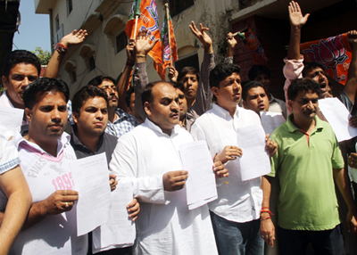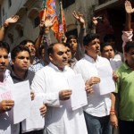 JAMMU, Sept 19: As part of its country-wide move to register FIR against the Prime Minister of India Dr Manmohan Singh in every State for illegal allotment of coal mines by Mining Ministry while he was holding the charge of the Ministry, dozens of BJYM activists under the leadership of their State President Munish Sharma assembled at Party Headquarters and marched towards Police Station, Pacca Danga, Jammu carrying party flags and copies of the FIR.