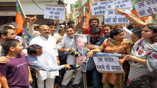 Led by BJYM State president Ravinder Raina, senior BJP leader Yudhvir Sethi and BJP Mahila Morcha State president Priya Sethi, a large number of youth workers of BJYM and BJP Mahila Morcha took a strong protest procession from party headquarters raising anti-Omar slogans and burnt the effigy of Chief Minister.