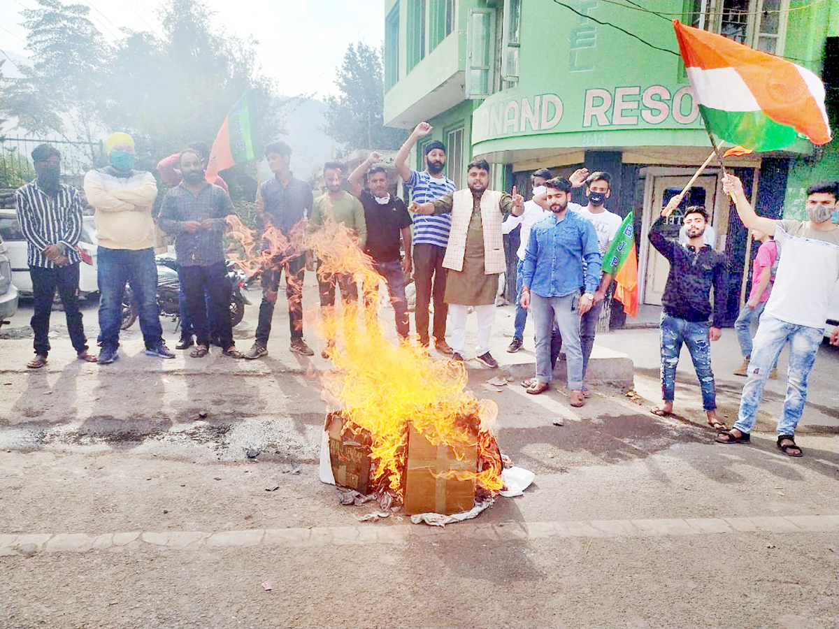 POONCH, Oct 25: Activists of Bhartiya Janta Yuva Morcha (BJYM) led by their president Aman Dabur staged a protest against PDP chief Mehbooba Mufti for her anti-National statements.