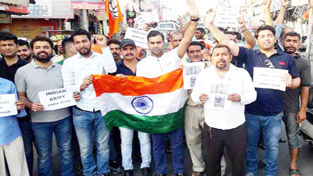 JAMMU, May 26: Bharatiya Janata Yuva Morcha (BJYM) conducted march in various parts of the State in support of Indian Army and Major Gogoi under the guidance and supervision of BJYM State president Dr. Suresh Ajay Magotra.
