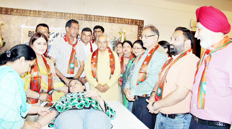 JAMMU, June 13: BJP J&K Mahila Morcha Spokesperson Ritika Trehan organized blood donation camp to mark eight years of PM Modi Government.