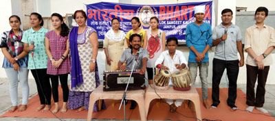 JAMMU, Aug 12: To celebrate “International Youth Day” Bhartiya Lok Sangeet Kala Sansthan (BLSKS) in coordination with Sangam Tru Art Production presented its 169th Saturday series Dogri musical play “Sade Bankure Jawan” at open air theatre, Durga Bhawan, Janipur here, which was written, produced and directed by M L Dogra and the music was composed by Raju Bajgal, Music Instructor, BLSKS.