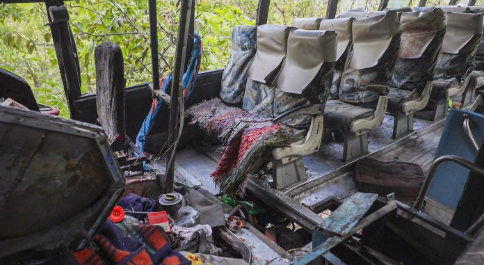 The 53-seater bus, on its way from the Shiv Khori temple to Katra, veered off the road following the barrage of gunfire and fell into a deep gorge near the Teryath village of the Poni area.