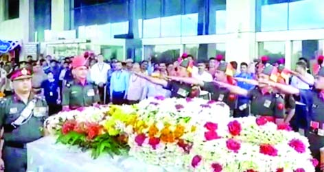 Deputy Commissioner SB Bommanahalli, Army officers and senior police officials received at Sambra Air Port today the body of Martyr soldier Rahul Sulgekar, who was martyred in a gun battle with terrorists at Krishna Ghati sector area of Poonch district in Jammu & Kashmir yesterday.