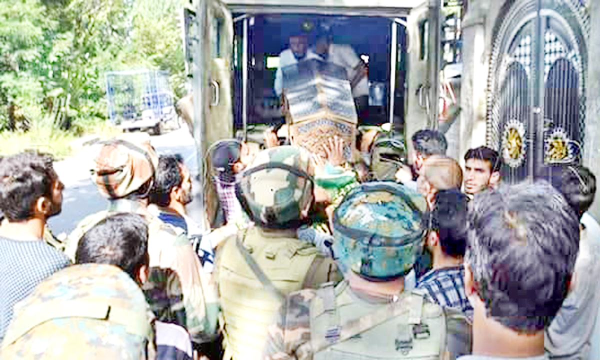 Body of TA jawan being taken for burial at village Shurat in Kulgam district on Monday. -Excelsior/Sajad Dar