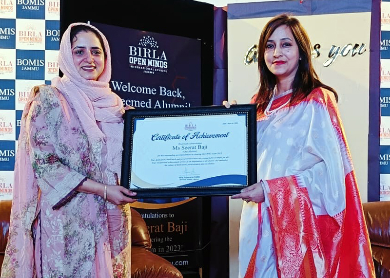 JAMMU, Apr 24: Birla Open Minds International School (BOMIS), Jammu hosted a special talk show with alumna Seerat Baji who qualified UPSC Civil Services exam recently. The event began with a warm welcome speech, inviting guests, faculty and viewers to join in commemorating the remarkable journey of Seerat Baji. Following the welcome speech, Seerat Baji was felicitated for her outstanding achievements.