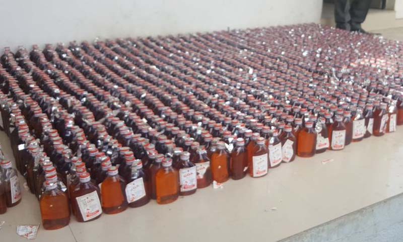 A police official said that Shami of Rajeev Nagar was arrested with 30 quarters of 180 ml liquor, 10 quarters of 250 ml liquor, and 8 quarters of 180 ml Royal Stag liquor.