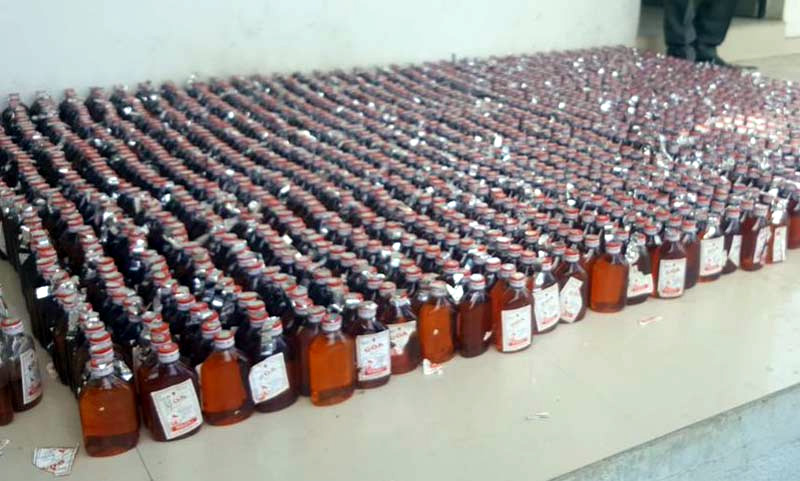 Cops from Police Station Ramban while patrolling apprehended one Dev Raj, son of Kuldeep Singh, resident of Hallah Dhandrath, Ramban and recovered 50 bottles (180 ml each) of illicit alcohol from him.