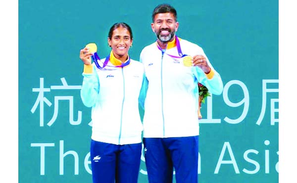 Rutuja Bhosale raised her game in nick of time while seasoned Rohan Bopanna stayed solid with his big serves as India came back from a set down to win the tennis mixed doubles gold at the Asian Games, here Saturday.
