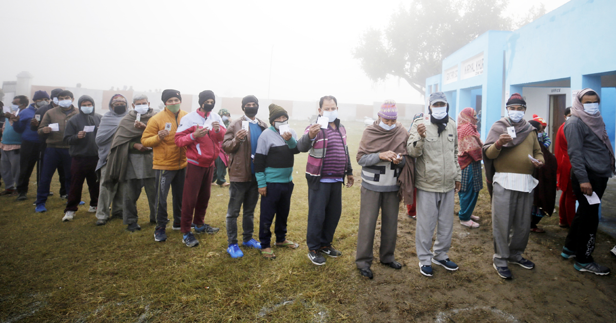 Surprisingly, the mass awareness regarding safety norms for COVID-19 pandemic appeared to have no effect in these areas as social distancing was seen almost nowhere at the polling stations while those on duty also not bothering to instruct the public in this regard and the face masks were also rare on the faces participating in the polling process.