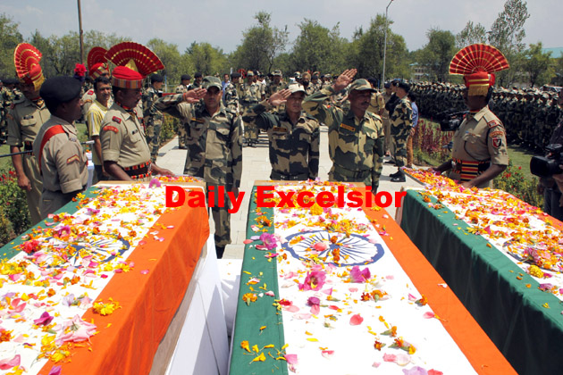 Homehome slider leftBorder Security Force (BSF) officers saluting three BSF soldiers killed in militant...