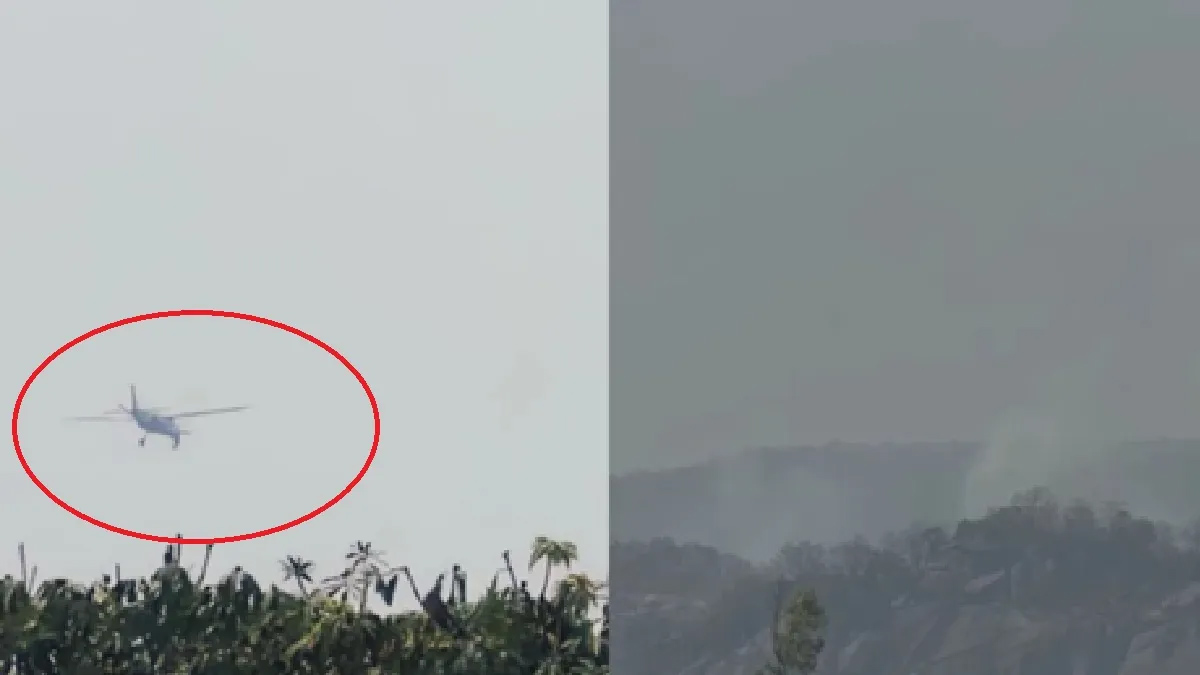 Visuals from the spot show what appears to be a small single-engine propeller aircraft flying unusually low, just above treetop level, moments before the reported crash