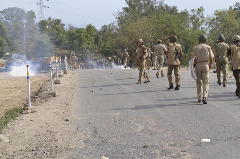 In the morning, some people pelted stones on police after blocking Jammu-Srinagar National Highway at Nagrota forcing police to lathicharge the mob. Nearly a dozen persons on both sides including Sub Divisional Police Officer (SDPO) Nagrota Khalik Choudhary were injured in stone pelting and lathicharge.