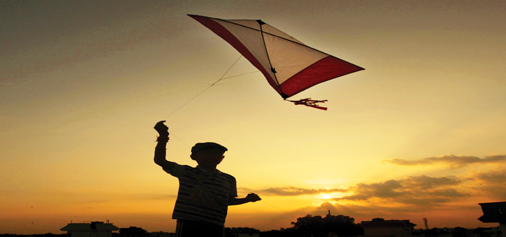 Boy flies a kite during Sunset in Jammu. -Excelsior/ Rakesh
