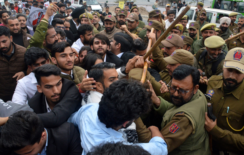 During the protest, brief scuffles were witnessed between the agitating students and policemen. The protesters later attempted to march towards the Civil Secretariat but were stopped at the gates, leading to brief scuffles once again between the students and the police.