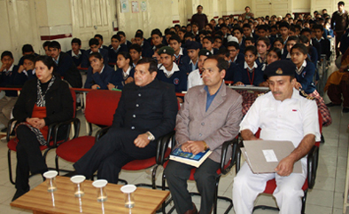 Brig NN Khajuria and others during an interactive session at Model Academy in Jammu on Thursday.