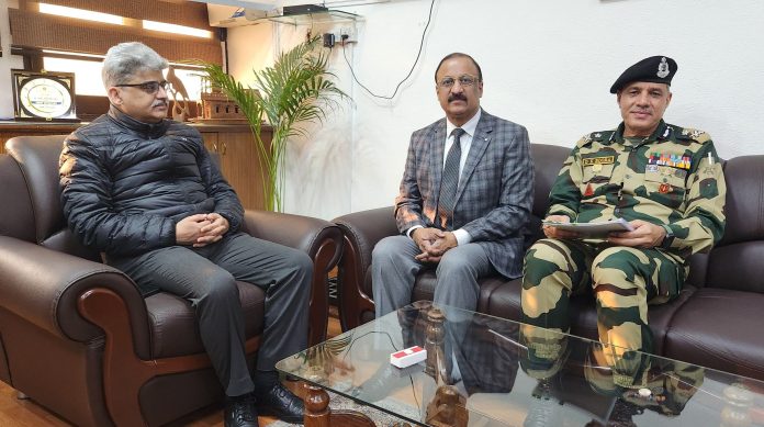 SUCHETGARH, Feb 17: Chief Secretary, Atal Dulloo, held discussions with Special Director General, Border Security Force, Y. B. Khurania regarding important issues related to International Border contouring the Jammu region. D.K. Boora IG, BSF Jammu Frontier presented a brief review on the different developmental activities currently being carried out by the Border Security Force.