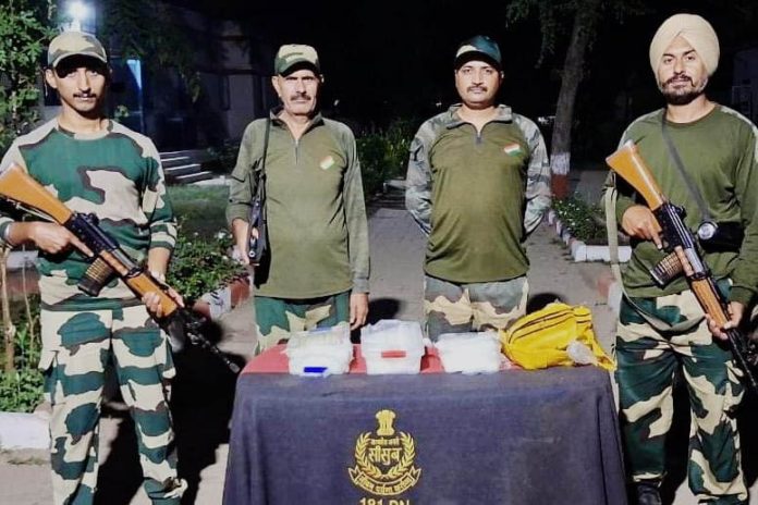 CHANDIGARH, Oct 18:  The BSF seized more than 3 kg of crystal methamphetamine and 600 grams of heroin along the India-Pakistan border in Punjab, thwarting cross-border smuggling attempts using drones.
