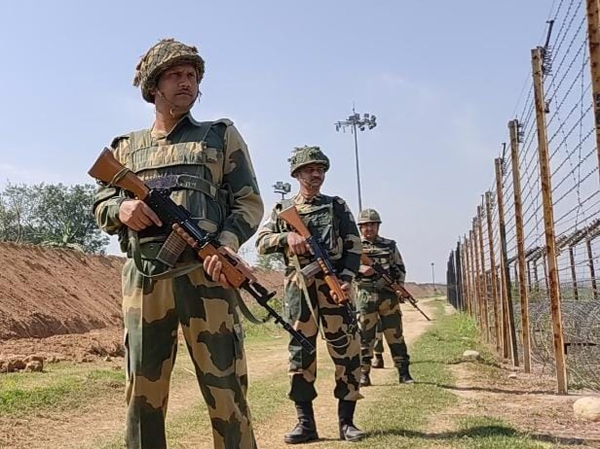 BSF jawans patrol the International Border in Samba sector despite ceasefire between India and Pakistan. —Excelsior/Nischant