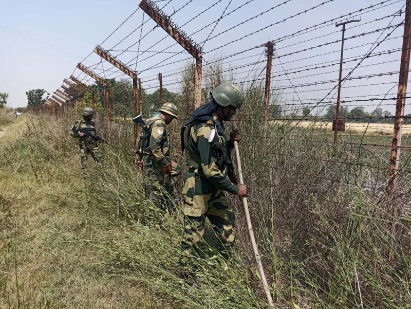 The BSF personnel were seen patrolling the area along the border fence and also using iron rods to check wild grass and bushes for the possible underground tunnel.