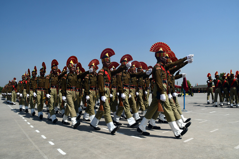 Fresh recruits during passing out parade at BSF headquarter in outskirts of Srinagar. -Excelsior/Shakeel