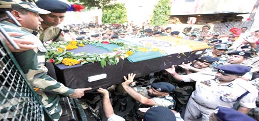 BSF officers and jawans carrying the body of martyr Gurnam Singh at BSF Headquarters in Paloura on Sunday. -Excelsior/Rakesh By Daily Excelsior - October 24, 2016 Share FacebookTwitterWhatsAppPinterestLinkedinCopy URLTelegramEmailTumblrReddItPrintKoo BSF officers and jawans carrying the body of martyr Gurnam Singh at BSF Headquarters in Paloura on Sunday. -Excelsior/Rakesh BSF officers and jawans carrying the body of martyr Gurnam Singh at BSF Headquarters in Paloura on Sunday. -Excelsior/Rakesh Follow our WhatsApp channel