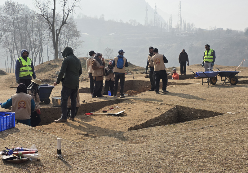 SRINAGAR, Dec 2: A large-scale archaeological excavation underway at Zehanpora in north Kashmir’s Baramulla district has revealed extensive remains believed to date back to the Kushan period, marking what officials describe as one of the most significant heritage findings in recent years.