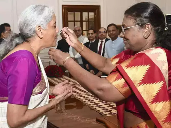 President Murmu offered ‘dahi-chini’ (curd-sugar), considered auspicious, to Sitharaman before she left for Parliament to present the Union Budget.