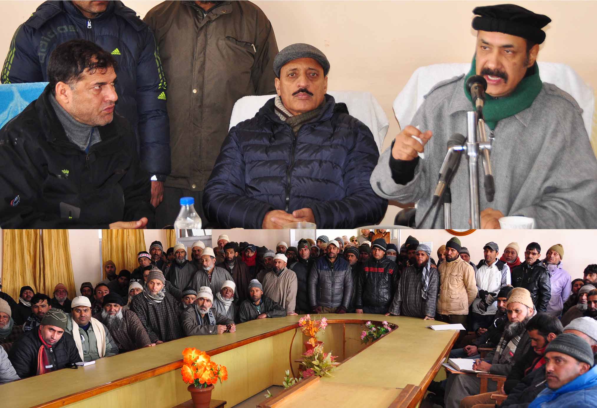 BANDIPORA:  Minister for Revenue, Disaster Management, Relief, Rehabilitation & Reconstruction, Syed Basharat Ahmed Bukhari accompanied by Minister for Rural Development & Panchayati Raj and Law & Order, Abdul Haq and Deputy Speaker Legislative Assembly, Nazir Ahmad Gurezi today took stock of post snowfall situation and relief measures undertaken by various departments for mitigating weather related problems in Gurez, Tulail and Machil areas in Bandipora district.