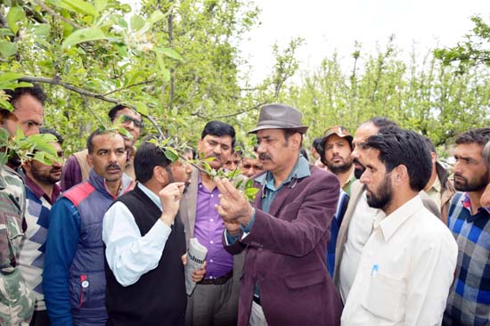 KULGAM: Minister for Horticulture, Syed Basharat Bukhari, today visited Kulgam district to assess the damages caused to horticulture crop due to recent hailstorm in the area.