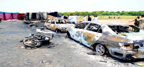 Burnt out cars and motorcycles are seen at the scene of an oil tanker explosion in Bahawalpur, Pakistan on Sunday. By Daily Excelsior - June 25, 2017 Share FacebookTwitterWhatsAppPinterestLinkedinCopy URLTelegramEmailTumblrReddItPrintKoo Burnt out cars and motorcycles are seen at the scene of an oil tanker explosion in Bahawalpur, Pakistan on Sunday. Burnt out cars and motorcycles are seen at the scene of an oil tanker explosion in Bahawalpur, Pakistan on Sunday. Follow our WhatsApp channel