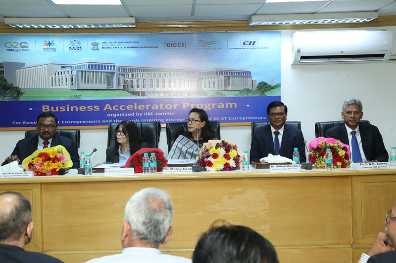 JAMMU, May 15: Indian Institute of Management (IIM) Jammu in collaboration with Ministry of Micro, Small and Medium Enterprises (MSME), National SC-ST Hub, Dalit Indian Chamber of Commerce (DICCI) and Confederation of Indian Industry (CII) today inaugurated the Business Accelerator Program for the SC-ST entrepreneurs and wards (aspiring entrepreneurs at the National Institute for Entrepreneurship and Small Business Development, Noida).