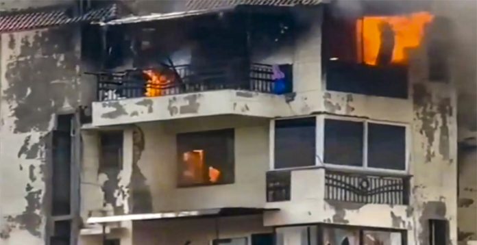 Visuals from the site show the building engulfed in flames with people standing in their balconies and crying for help.