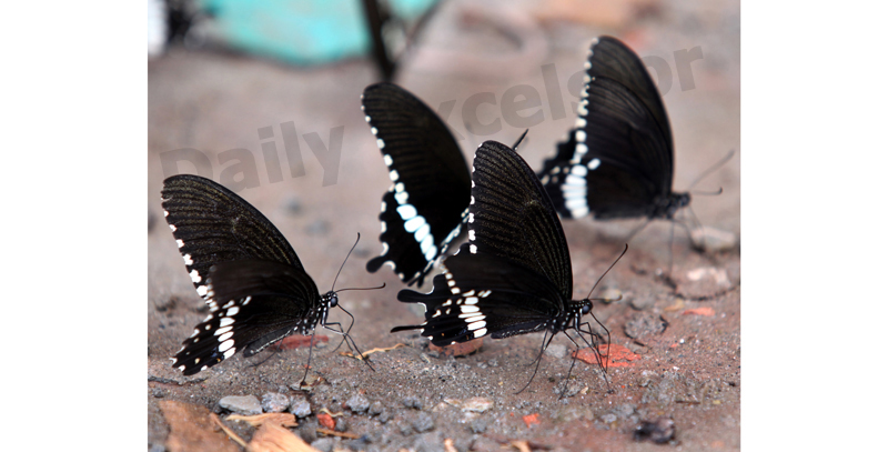 Butterflies sit on a wet surface near Tawi river in Jammu. -Excelsior/Rakesh