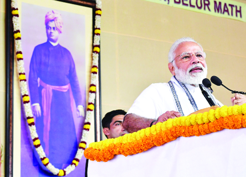 Prime Minister, Narendra Modi addressing the gathering at the Belur Math, in Kolkata on Sunday.