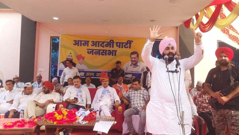 Cabinet Minister Punjab Government Harjot Singh Bains addressing one day convention of AAP at Ramgarh in District Samba on Sunday.