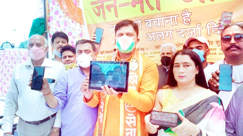 JAMMU, July 5: In an effort to know the pulse of the people on separate statehood to Jammu, Shiv Sena with the support of various political, social and religious organizations including intellectuals and social workers jointly launched a “Janmat Campaign” at statue of the last ruler of the princely state of Jammu and Kashmir, Maharaja Hari Singh, here today.