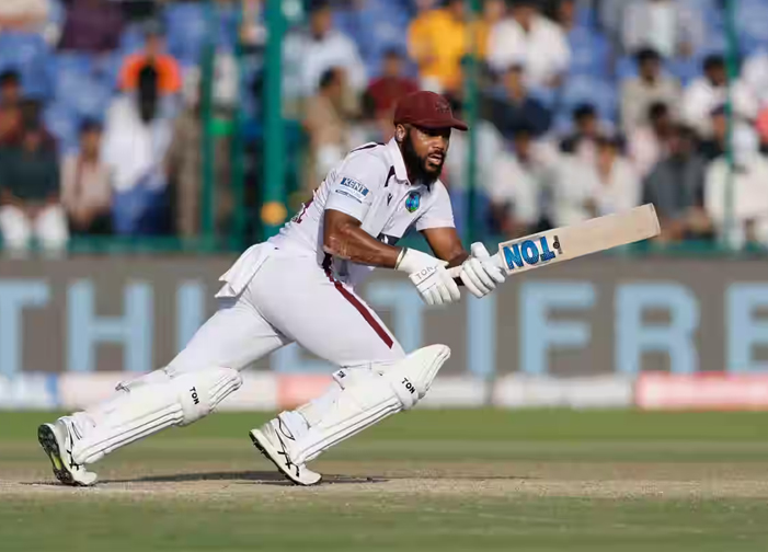 West Indies went into the tea with scorecard reading 35 for 2 but Campbell altered his strategy by adopting an offensive approach as he took the aerial route against Ravindra Jadeja and Kuldeep.