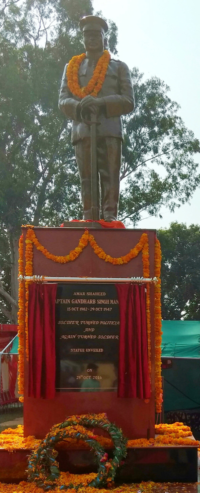 JAMMU, Oct 29: On the occasion of 69th Martyrs Day of Captain Gandharb Singh Manhas, his statute was unveiled in village Pargwal.