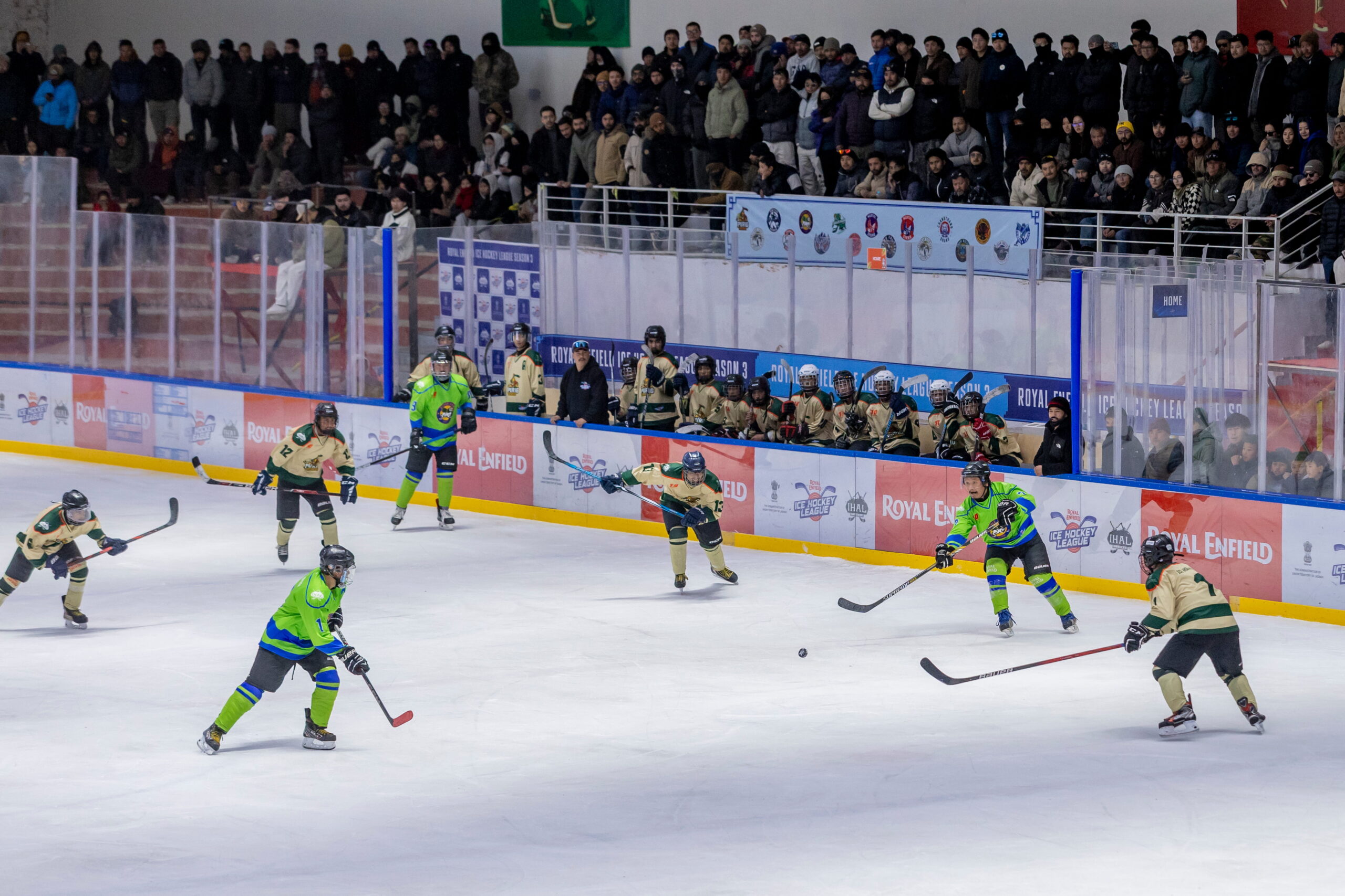 Leh, Feb 12: The semi-final stage of the Royal Enfield Ice Hockey League Season 3 at the Nawang Dorjay Stobdan (NDS) Stadium, Leh, witnessed captains stepping up under pressure as the finalists were confirmed. Organised in partnership with the UT Administration of Ladakh and the Ice Hockey Association of Ladakh, the semi-finals saw Semzes Dolma lead Sham Eagles with a hat-trick, Nissa Khatoon fire Shakar Chiktan Queens into the women’s final with the decisive goal, Moheb Ur Rehman Mir inspire Humas Warriors’ comeback in the men’s semi-final, and Sarfaraz Hussain power Purig Warriors with a hat-trick to set up the title clash with Humas Warriors.