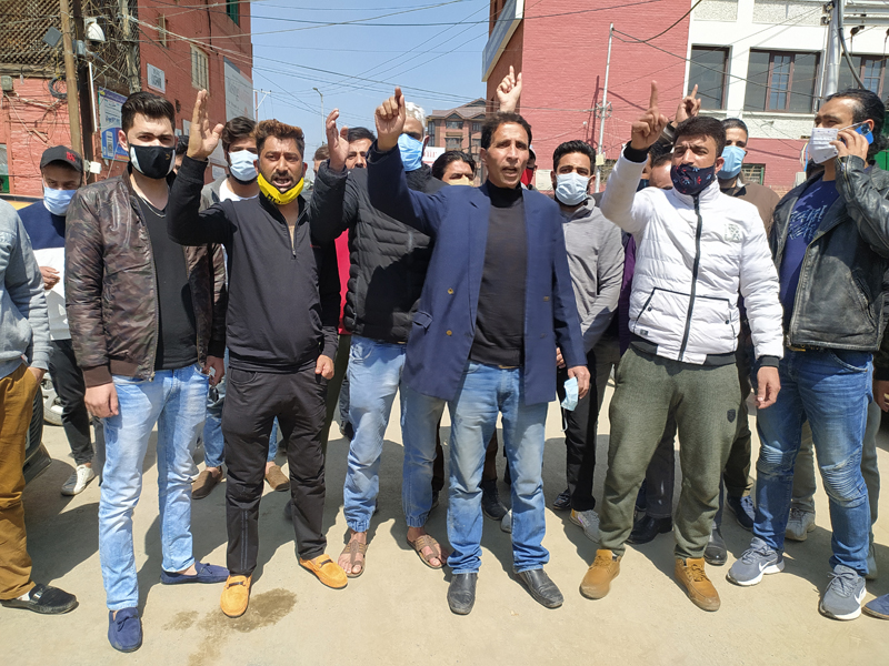 Srinagar, Mar 31: Car dealers of Srinagar as well as the Kashmir Trade Alliance today staged a protest against the orders of the authorities which directed for the re-registration of the vehicles that have been bought from outside J&K while urging them to clear confusion in this regard.