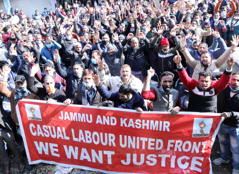 JAMMU, Jan 19: Casual labourers of various Government departments today held strong protest demonstration at Press Club here in support of their pending demands.