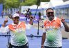 Madhura Dhamangaonkar of India (L) and her coach celebrate after clinching...